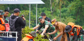 Kodam IX/Udayana Bersihkan Gulma di Danau Yeh Malet
