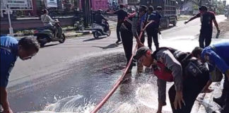 Tumpahan Oli di Jalan Raya Banjarangkan, Pengendara Motor Berjatuhan