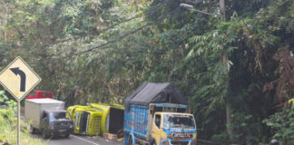 Alami Patah As, Truk Terguling di Desa Sambangan