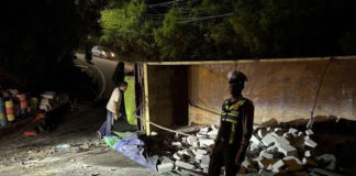 Gagal Nanjak, Truk Pengangkut Bata Ringan Terguling di Jimbaran