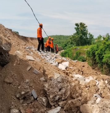 Dipicu Curah Hujan Tinggi, Ruas Jalan Provinsi di Depan Setra Adat Kota Tabanan Jebol