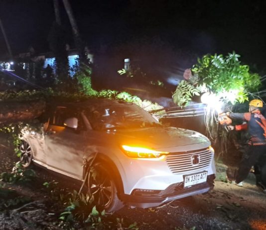 GIANYAR, BALIPOST.com - Sebuah pohon tumbang pada Jumat (24/12), sekitar pukul 06.39 WITA di Perumahan By-pass Darma Giri. Pohon berjenis Singapur ini menimpa rumah.